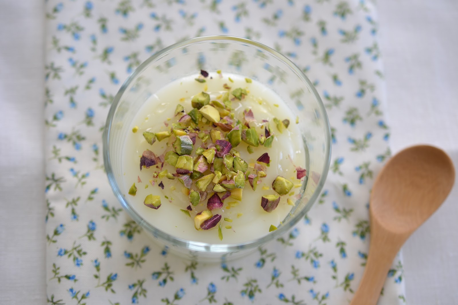 Il mouhalabieh è un dessert libanese profumato con acqua di fiori d’arancio, miele e pistacchi.